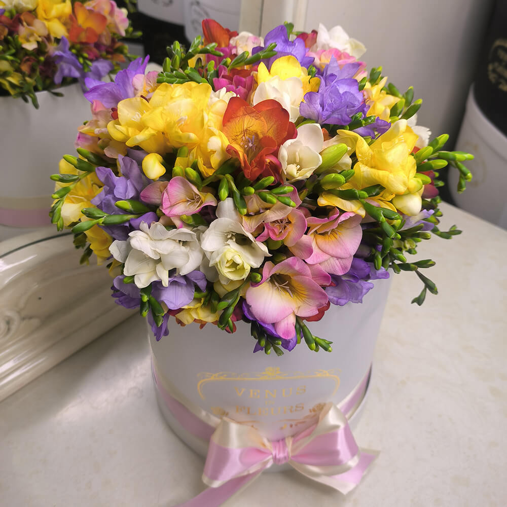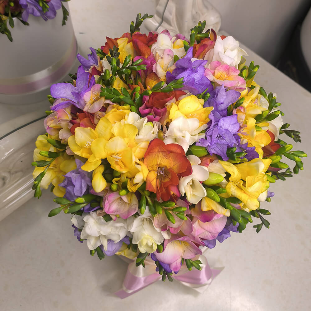 Неклассический букет из необычных цветов! Цветы фрезии очень нежные, хрупкие и милые. Передайте свои самые искренние чувства при помощи этого букета.