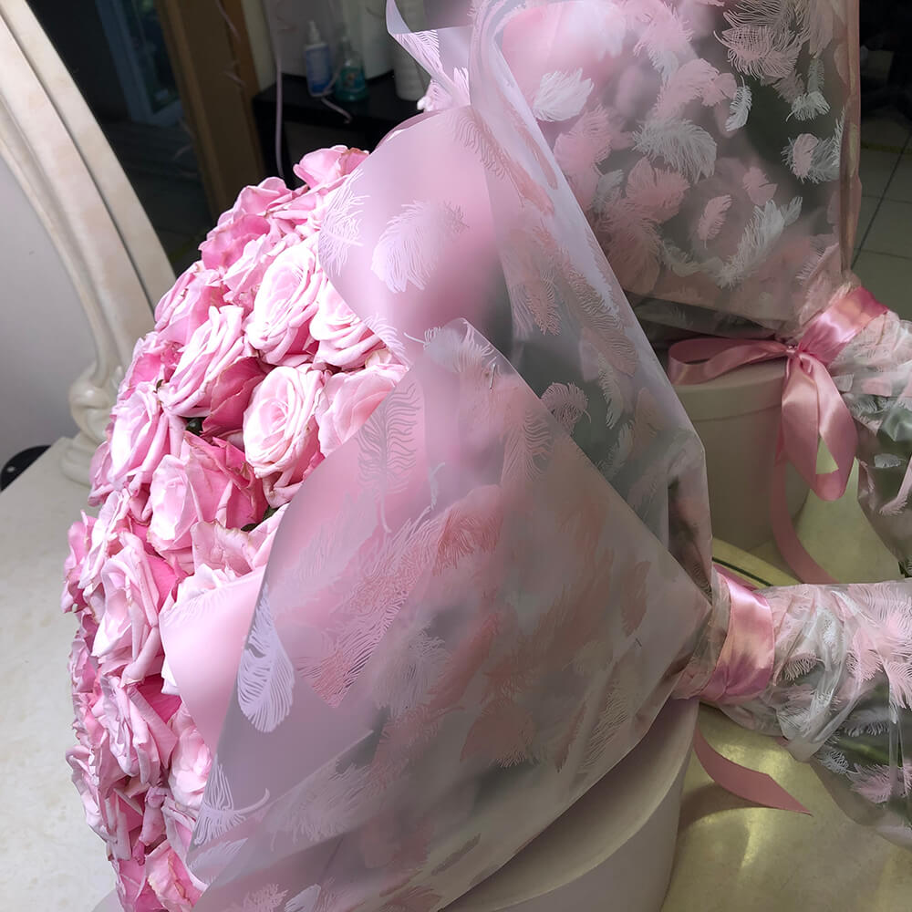 • фирменная транспортировочная коробка, упаковочная пленка, атласные ленты