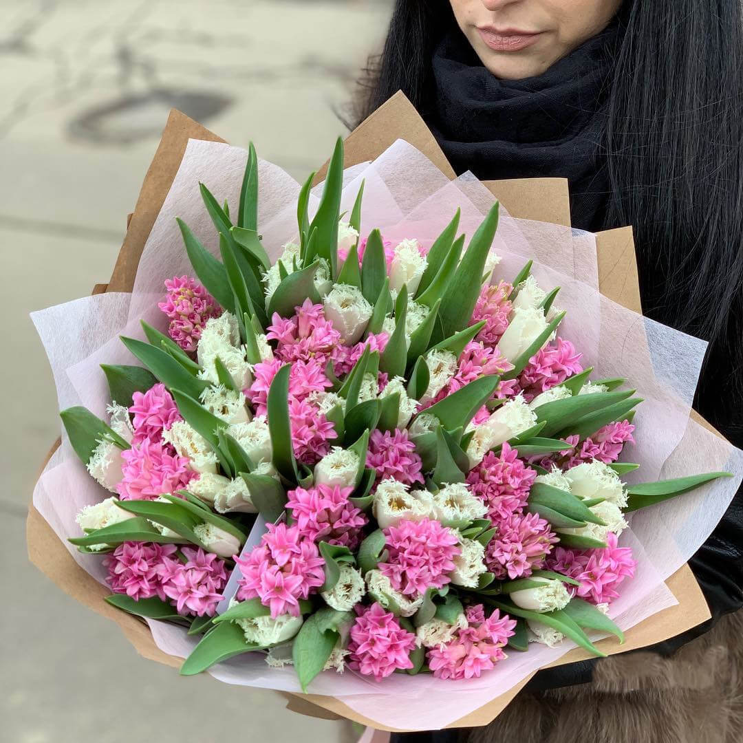 Пышные, яркие и красивые гиацинты образуют прекрасный букет.