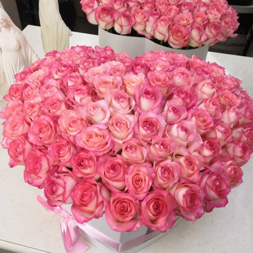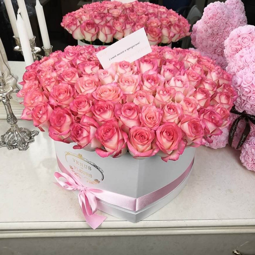 Нежный розовые розы в коробке в форме сердца расскажут вашей любимой о чувствах и эмоциях, которые вы испытываете по отношению к ней!