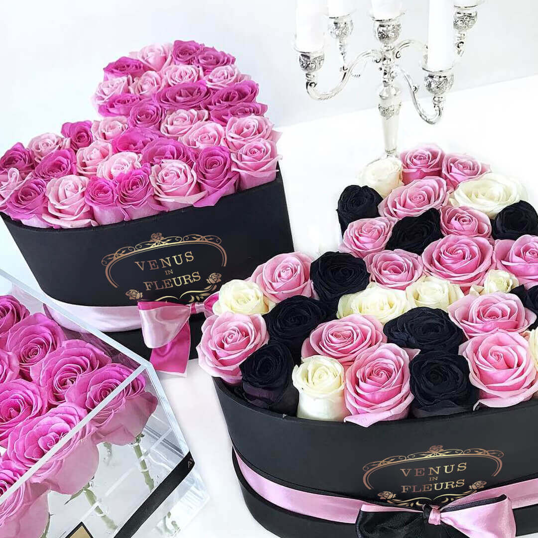 Букет из черных, белых и розовых роз в форме сердца - это стильно, элегантно и необычно. Такая композиция станет шикарным подарком как для женщины, так и для мужчины.