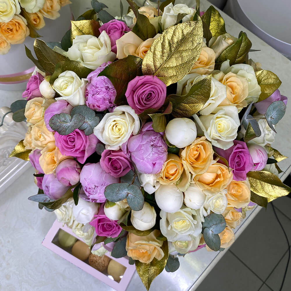 Luxury "Пышная коллекция" премиум-класса, своей красотой и необычным сочетанием цветов подчеркнёт элегантность, неповторимую страсть и самые глубокие чувства к Вашей второй половинке. А необычная композиция запомнится надолго. Получив такой подарок, она никогда не останется равнодушной.