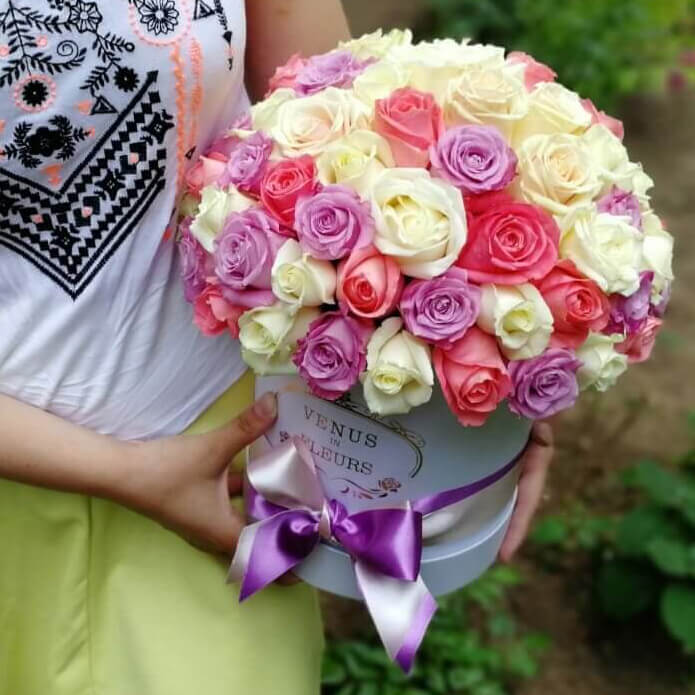 Розы в шляпной коробке всегда останутся классикой и альтернативой букетам.
