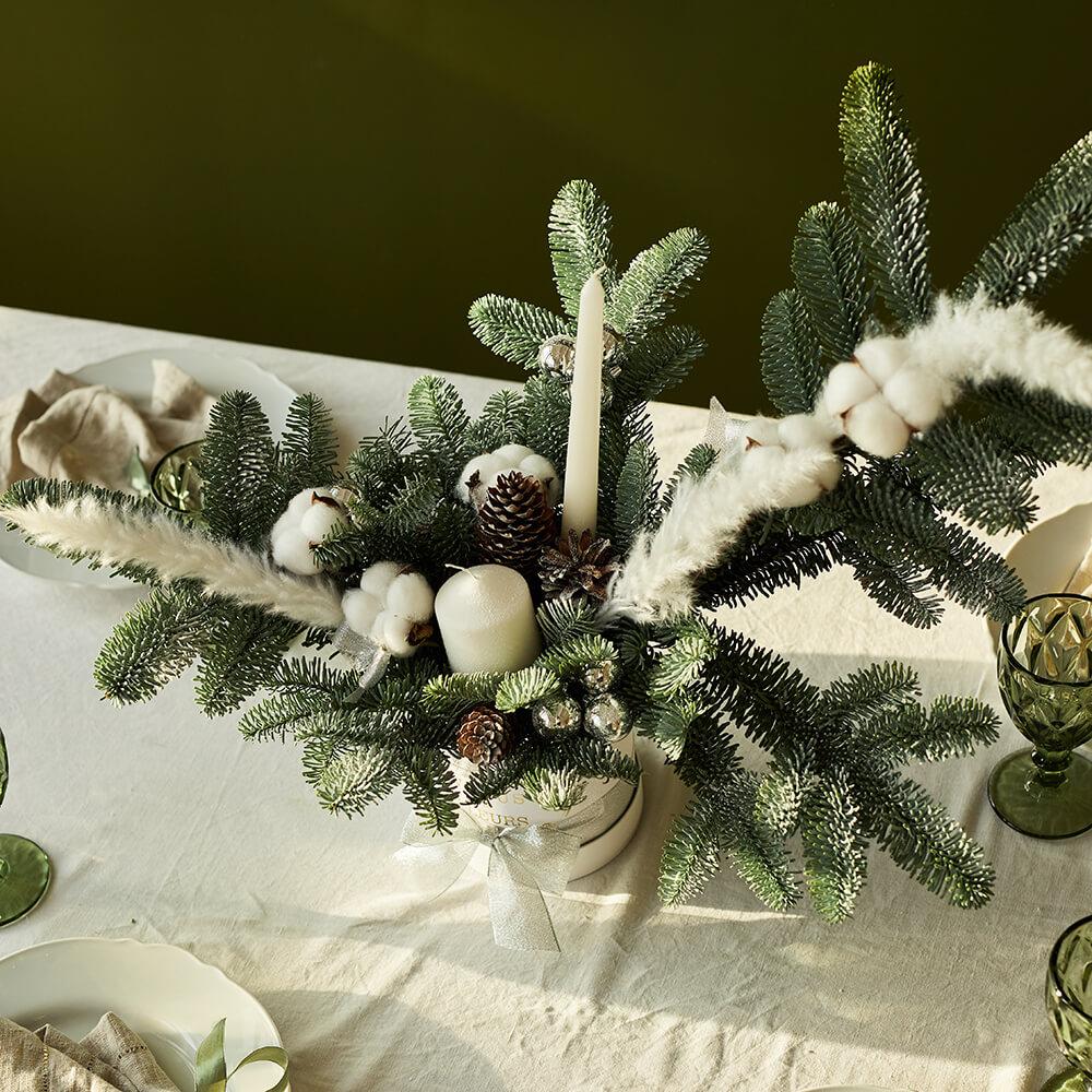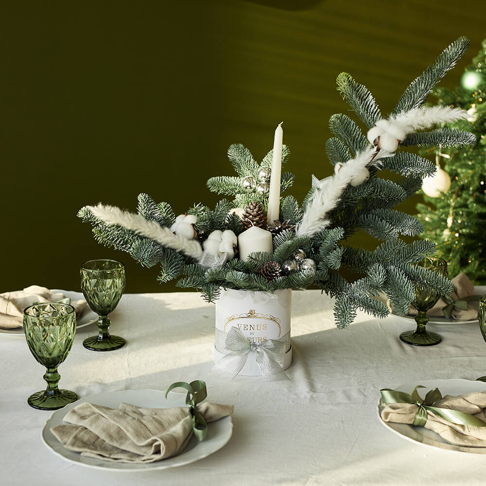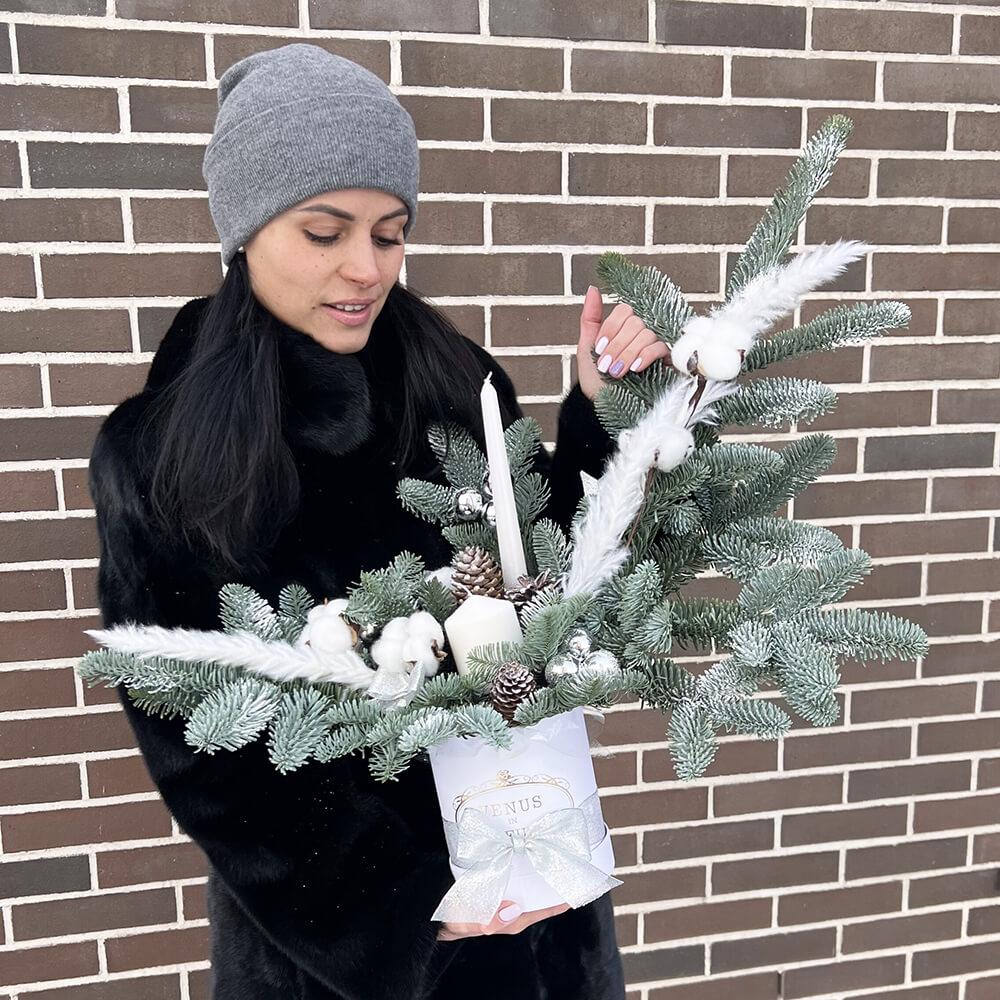 2. Новогодний букет будет радовать вас на протяжении всех новогодних праздников, цветы в коробке при поливе хранятся от 7 до 14 дней.