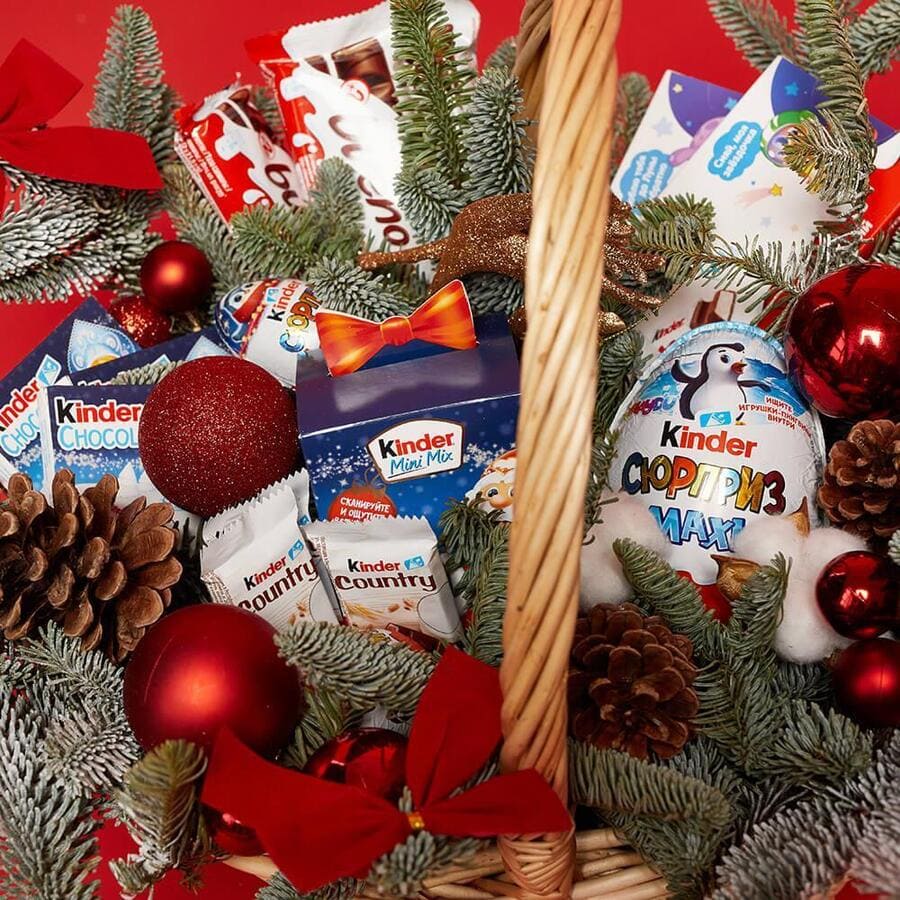 • новогодние игрушки - 3 шт., киндер сюрприз - 3 шт., киндер шоколад - 30 шт., киндер каунтри - 2 шт., шишки - 3 шт., киндер буэно - 3 шт., киндер мини микс - 1 шт., киндер сюрприз макси - 1 шт, нобилис