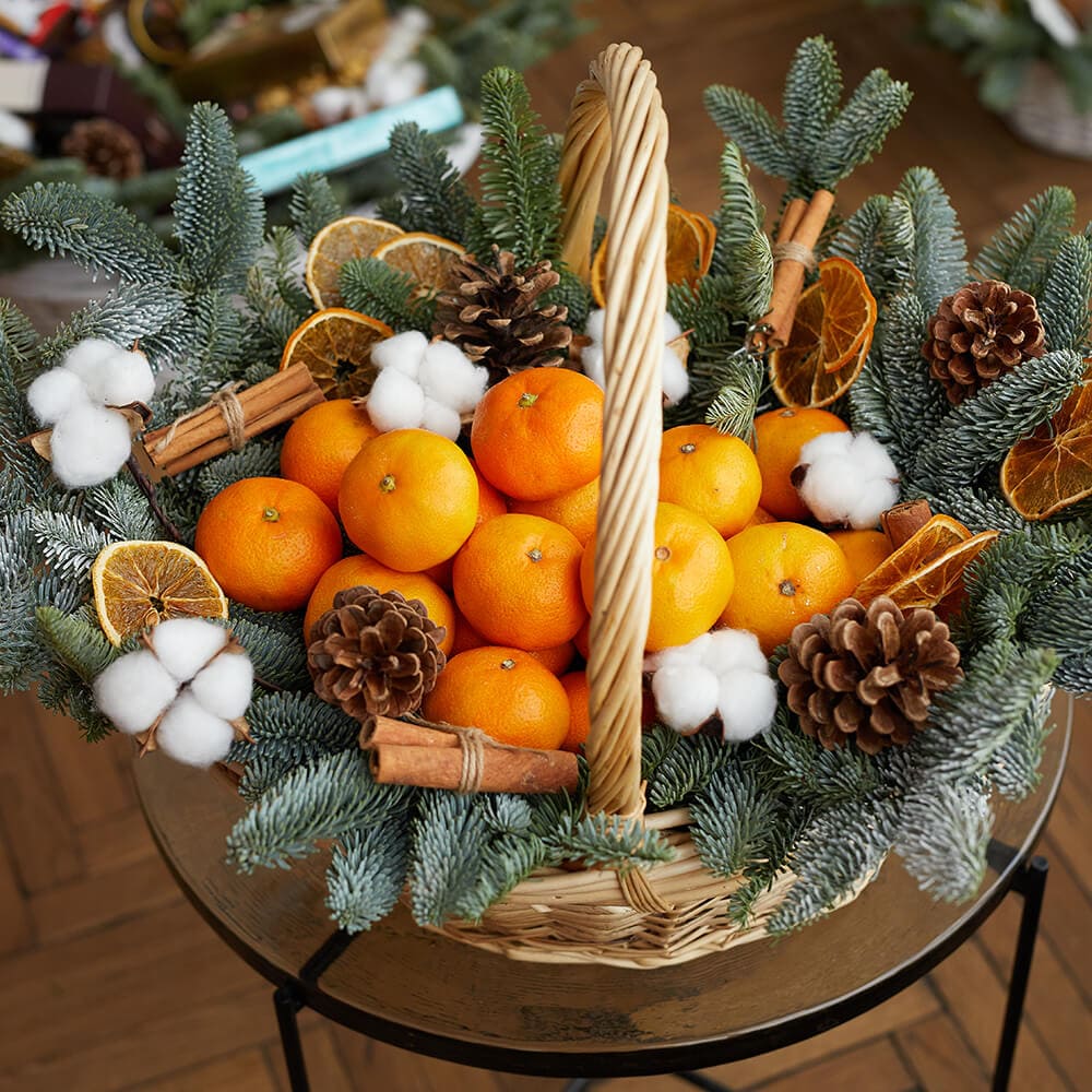 • корица - 3 шт., апельсиновые дольки - 5 шт., мандарины - 15 шт., шишки - 5 шт., хлопок - 5 шт., нобилис