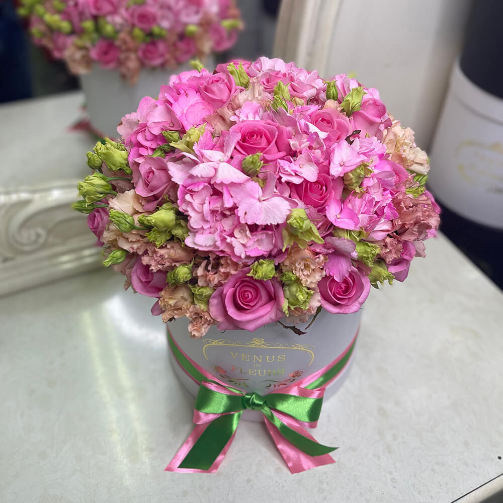 • 1 гортензия, 20 роз, 10 эустом