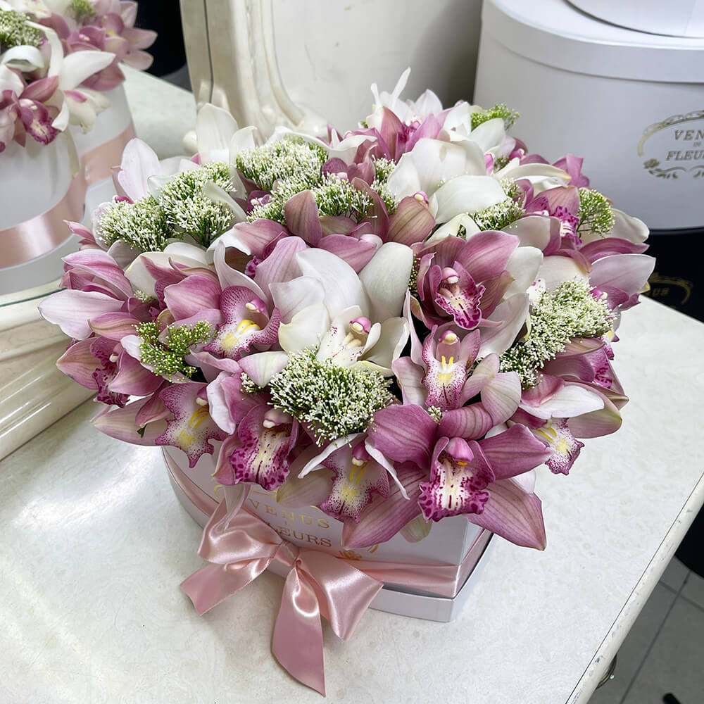 Орхидея - безумно красивый цветок, она сохраняет свою свежесть от 14-28 дней. Этот милый и нежный цветок ассоциируется со стремлением к постоянному совершенству, благородству.