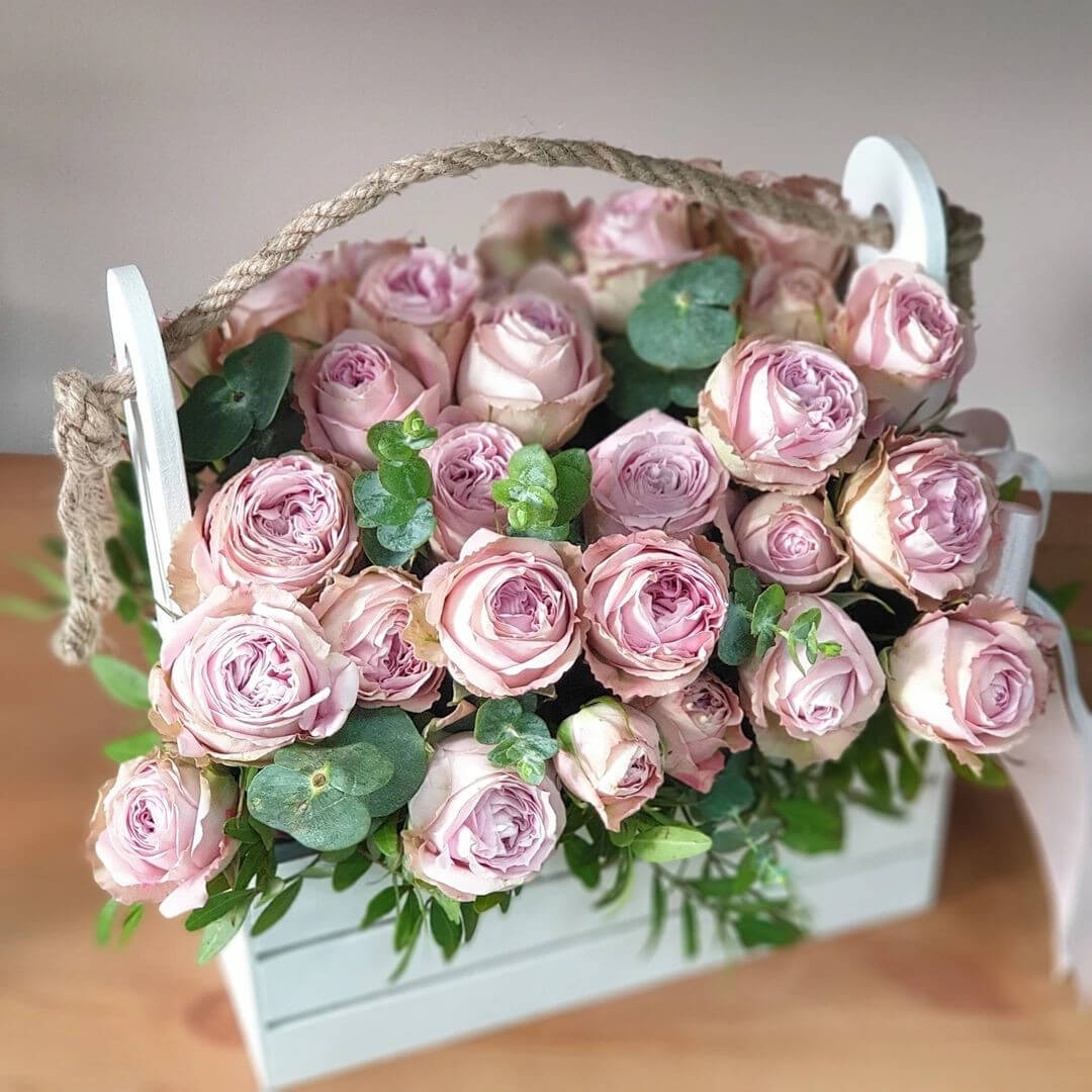 • 15 пионовидных роз, 5 эвкалипта, 5 писташ
