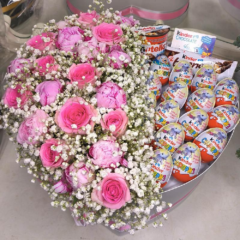 Подсластите жизнь своим любимым и сделайте подарок из киндеров и нежных роз в коробке в форме сердца. Ваша любимая удивиться подаренному чуду, аналогов нет.