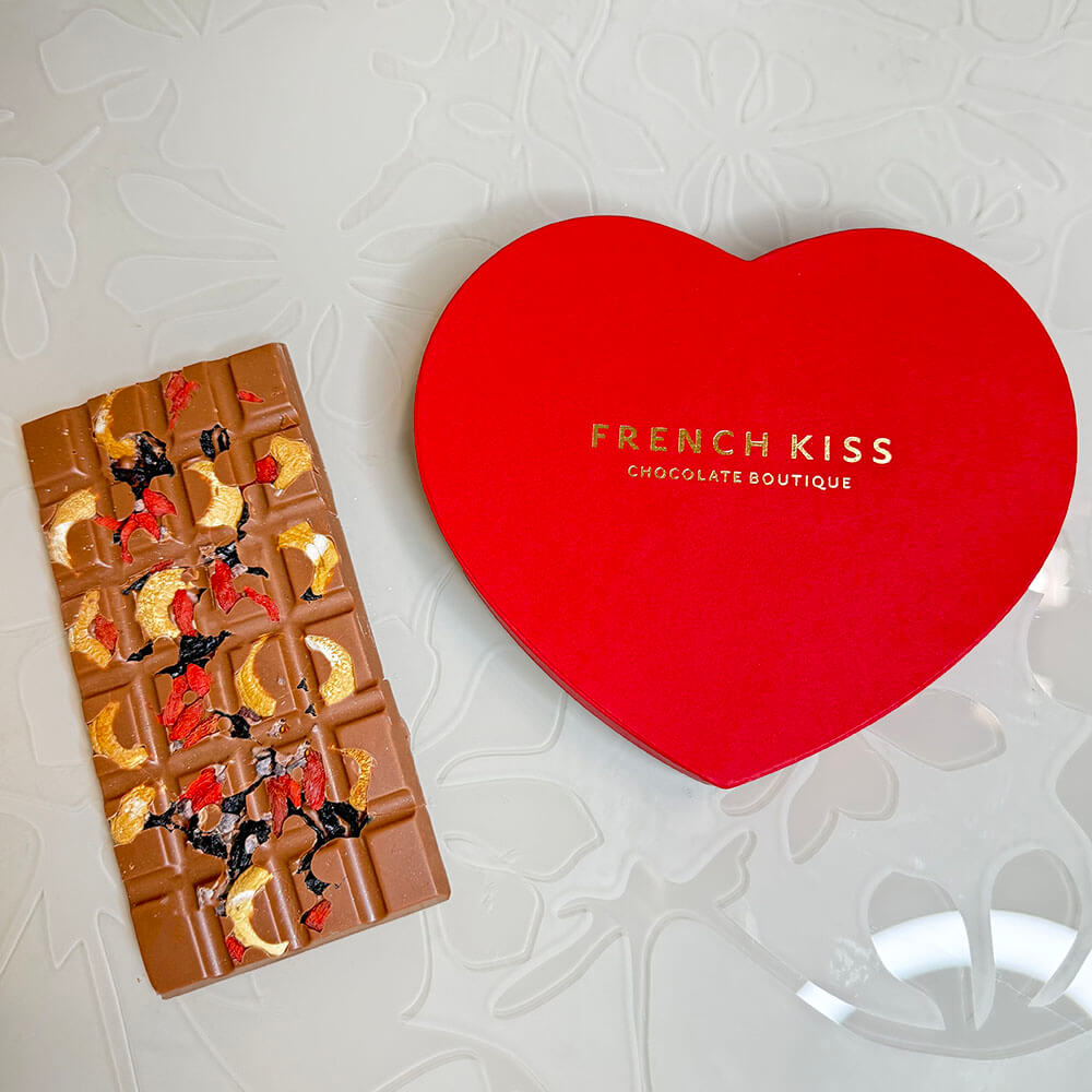- Состав: молочный шоколад(сахар - песок, какао - масло , цельное сухое молоко, какао-тертое, эмульгатор - соевый лецитин, натуральный ароматизатор ваниль), пекан целый, фисташка целая, миндаль целый, воздушный рис, горький шоколад 70% (какао тертое, сахар-песок, какао-масло, эмульгатор - соевый лецитин) , покрытие-гуммиарабик, глянцеватели.