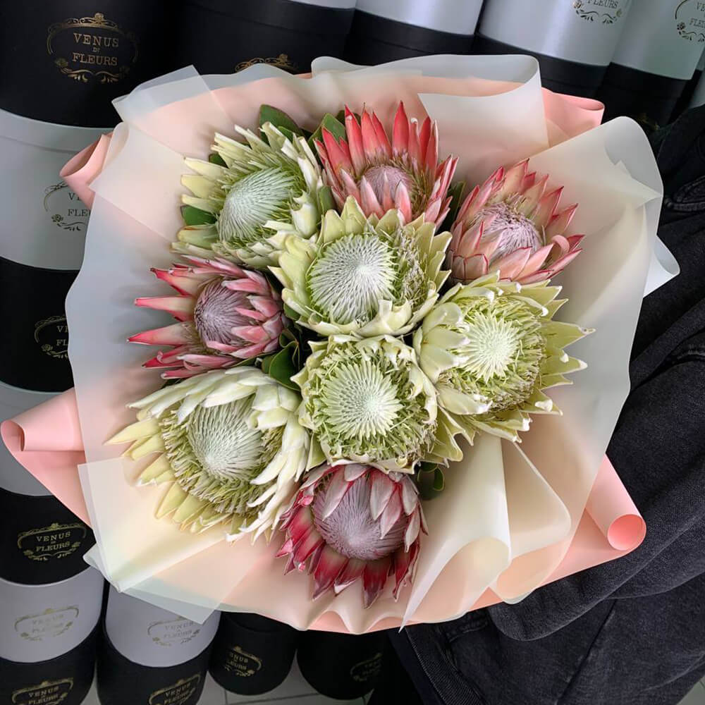 Цветы мы закупаем каждое утро, чтобы они оставались максимально свежими; именно поэтому они Вас будут радовать от 7 до 14 дней.
