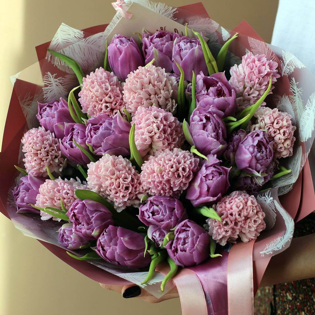 Пышные, яркие и красивые гиацинты образуют прекрасный букет.