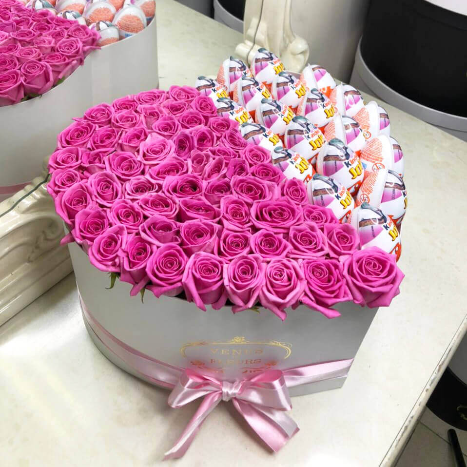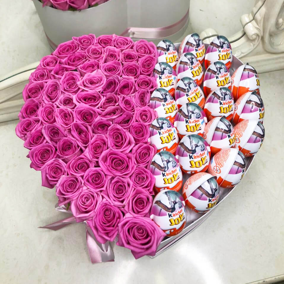 Подсластите жизнь своим любимым и сделайте подарок из киндеров и нежных роз в коробке в форме сердца. Ваша любимая удивиться подаренному чуду, аналогов нет.