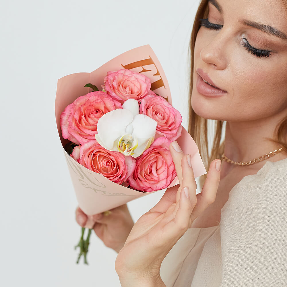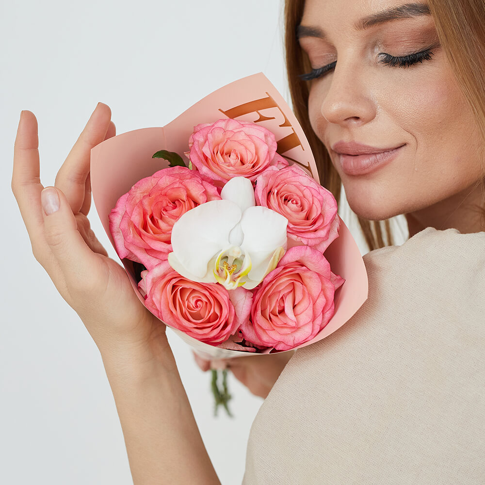 • 5 роз, орхидеи