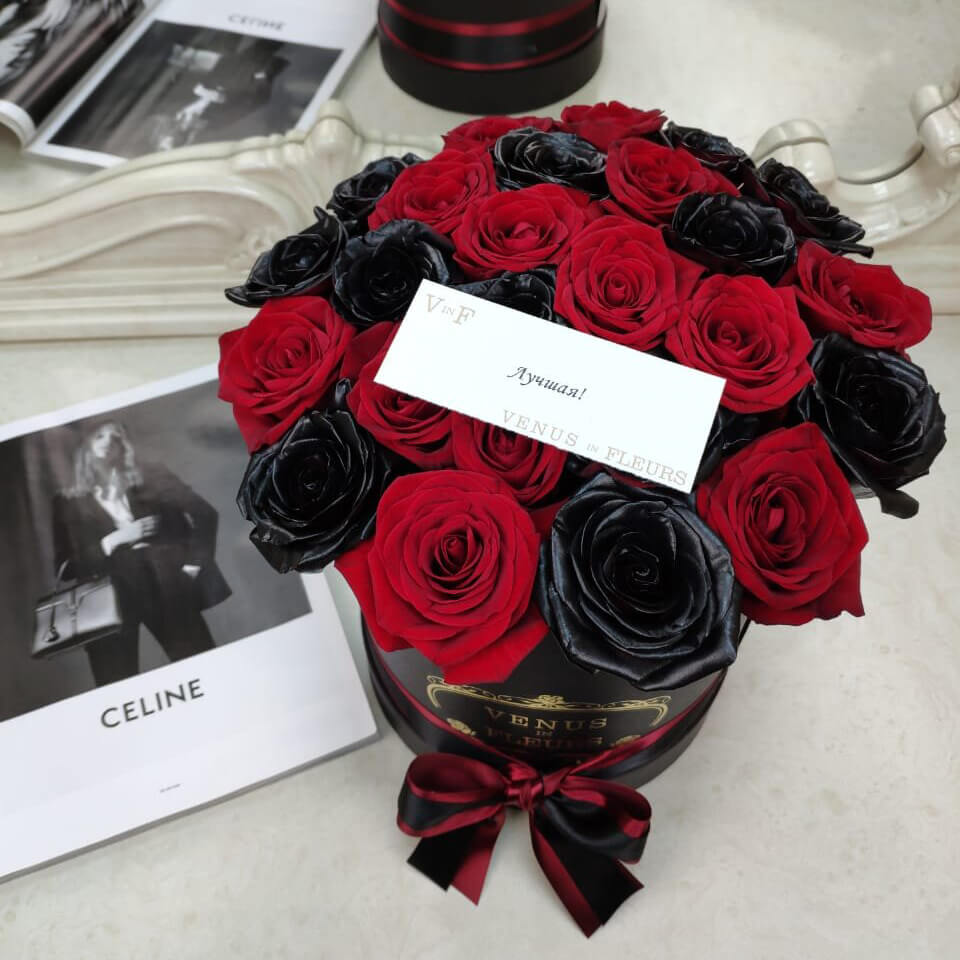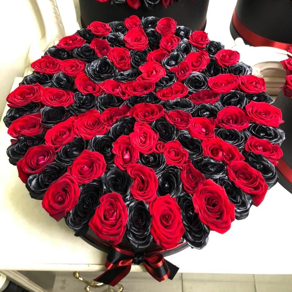 Букет из черных и красных роз в коробке - это стильно, элегантно и необычно. Такая композиция станет шикарным подарком как для женщины, так и для мужчины.