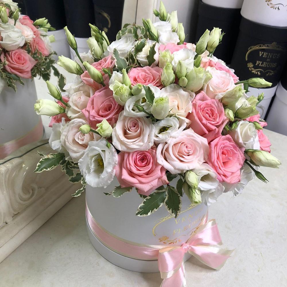 • белая коробка ручной работы, атласные ленты, флористическая губка