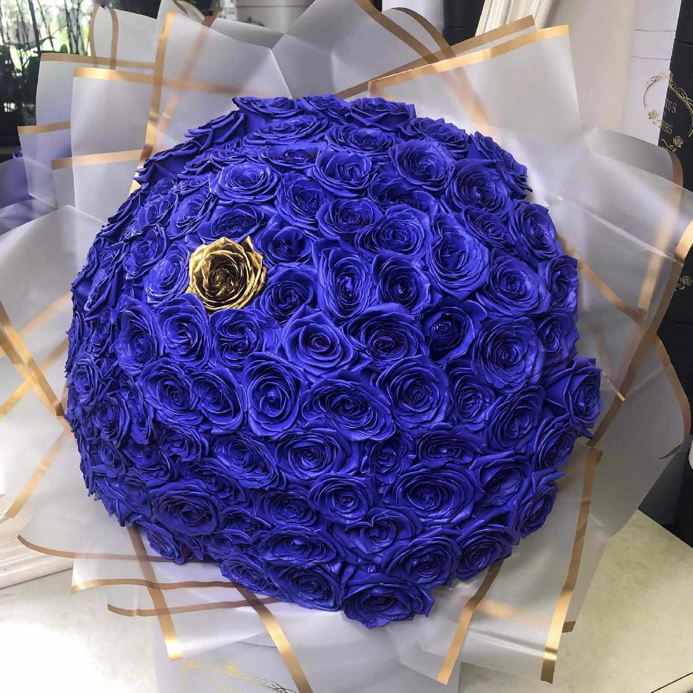 Букет из ярких синих роз в сочетании с золотой розой подарит волшебство, таинственность и достижение невозможного. Удивите своих близких необычным букетом из прекрасных синих роз. Такой букет останется в памяти на долгие годы.