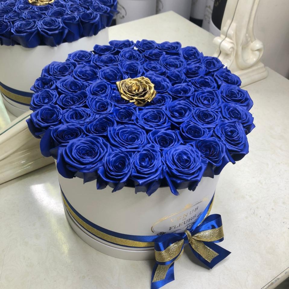 Цветы мы закупаем каждое утро, чтобы они оставались максимально свежими именно поэтому они Вас будут радовать на протяжении от 7 до 14 дней. Синие розы мы красим самостоятельно, без запаха.