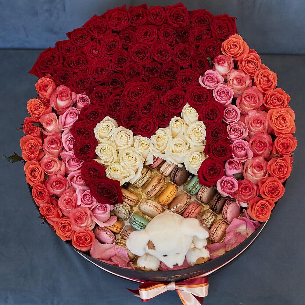 Подсластите жизнь своим любимым и сделайте подарок из нежных роз и сладостей в коробке в форме сердца. Ваша любимая удивиться подаренному чуду, аналогов нет.