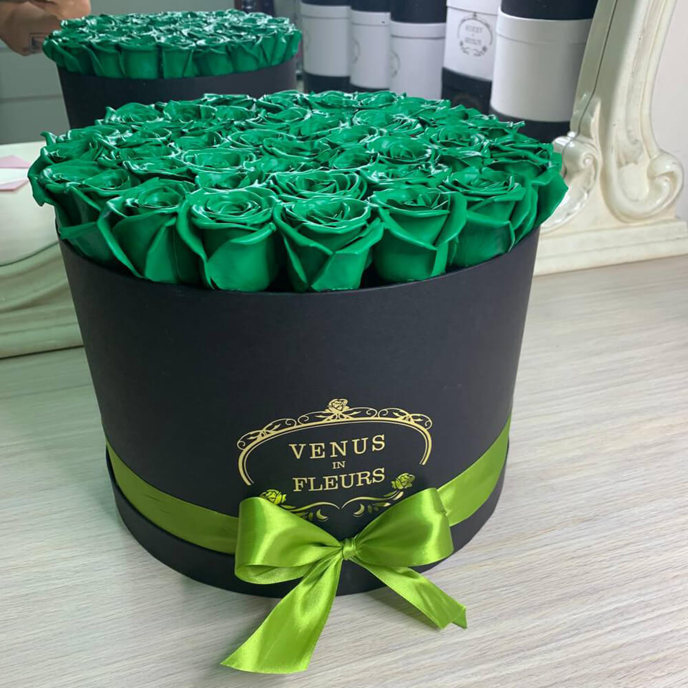 Роз такого цвета в природе не существует. Для их производства мы используем живые цветы и только высококачественную флористическую краску без запаха из Германии. Она гипоаллергенна, не пачкается и не осыпается. Ароматизируем розы легким цветочным парфюмом.