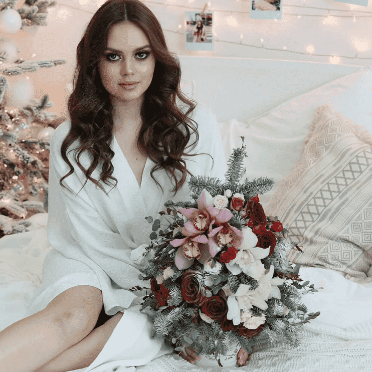 Девушкам, чья свадебная церемония назначена на зимние месяцы, приходится мириться с ограниченным выбором растений. Теплолюбивые экзотические цветы с тонкими лепестками могут не выдержать долгие прогулки и фото на улице. Но есть много других вариантов: кустовые и крупноцветковые розы, герберы, хризантемы, каллы, бруния, цмин, сухоцветы всех видов и оттенков. Флористы составляют свадебные монобукеты и сборные композиции, которые можно дополнить шишками, мехом, сияющими бусинами и другим декором.