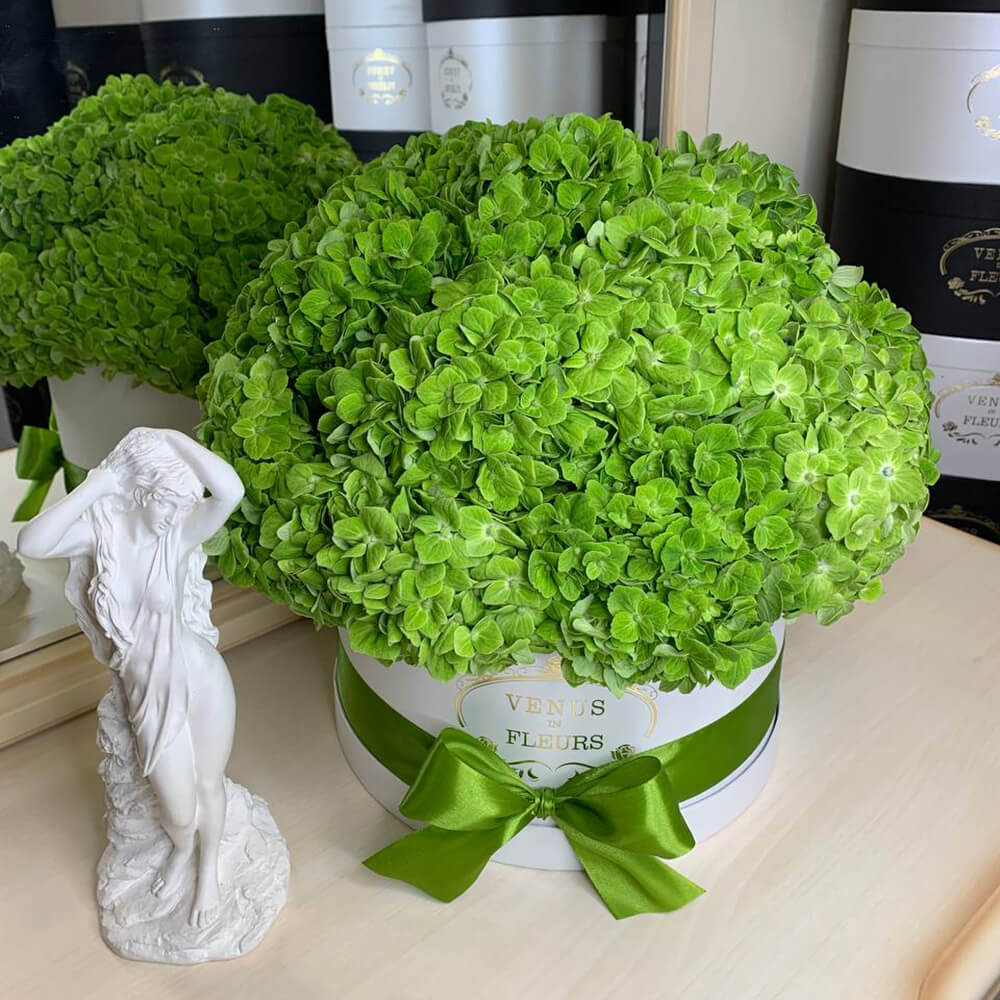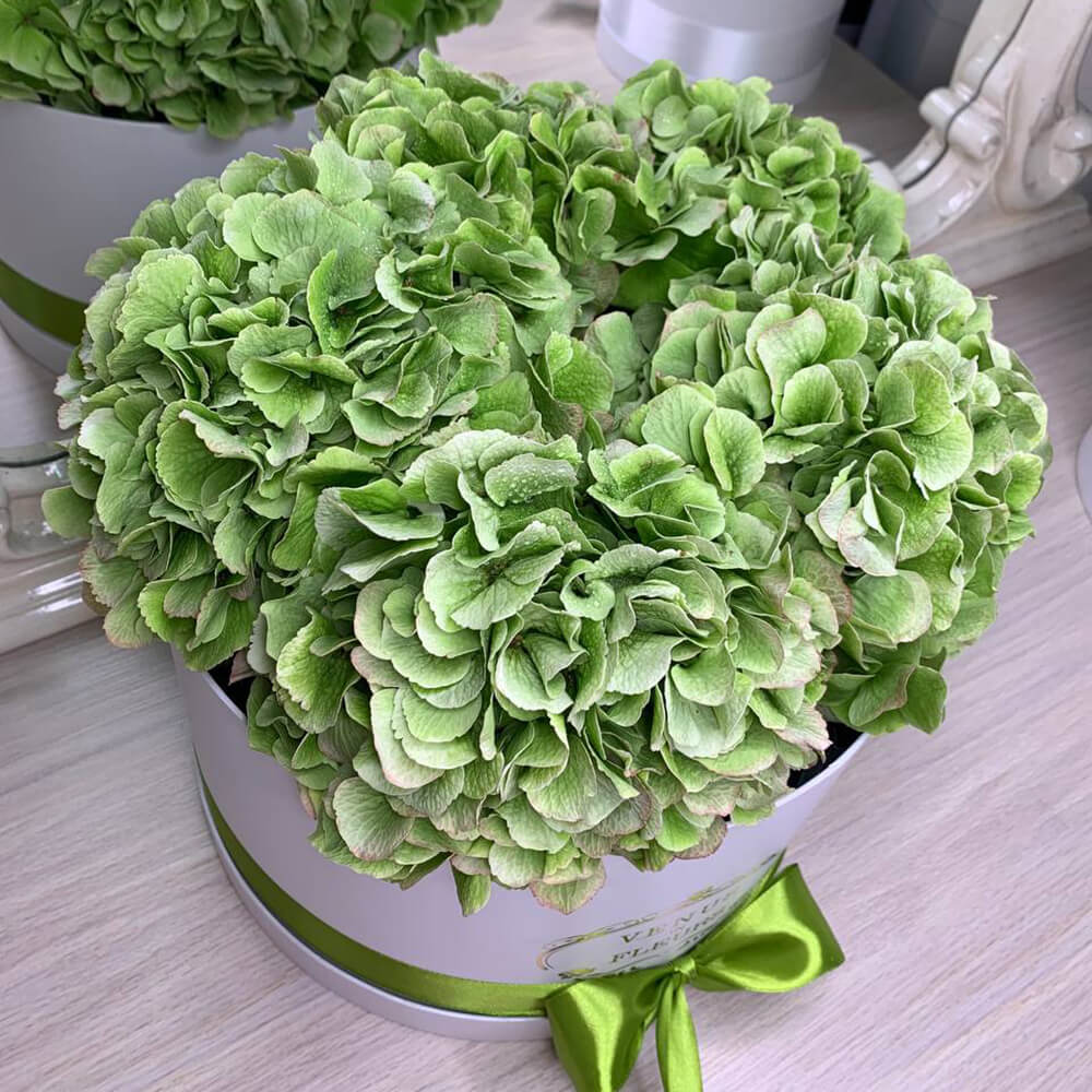 У нас вы можете найти более 10 видов гортензий. Мы закупаем цветы каждое утро, чтобы они оставались максимально свежими, именно поэтому они будут радовать вас от 7 до 14 дней.