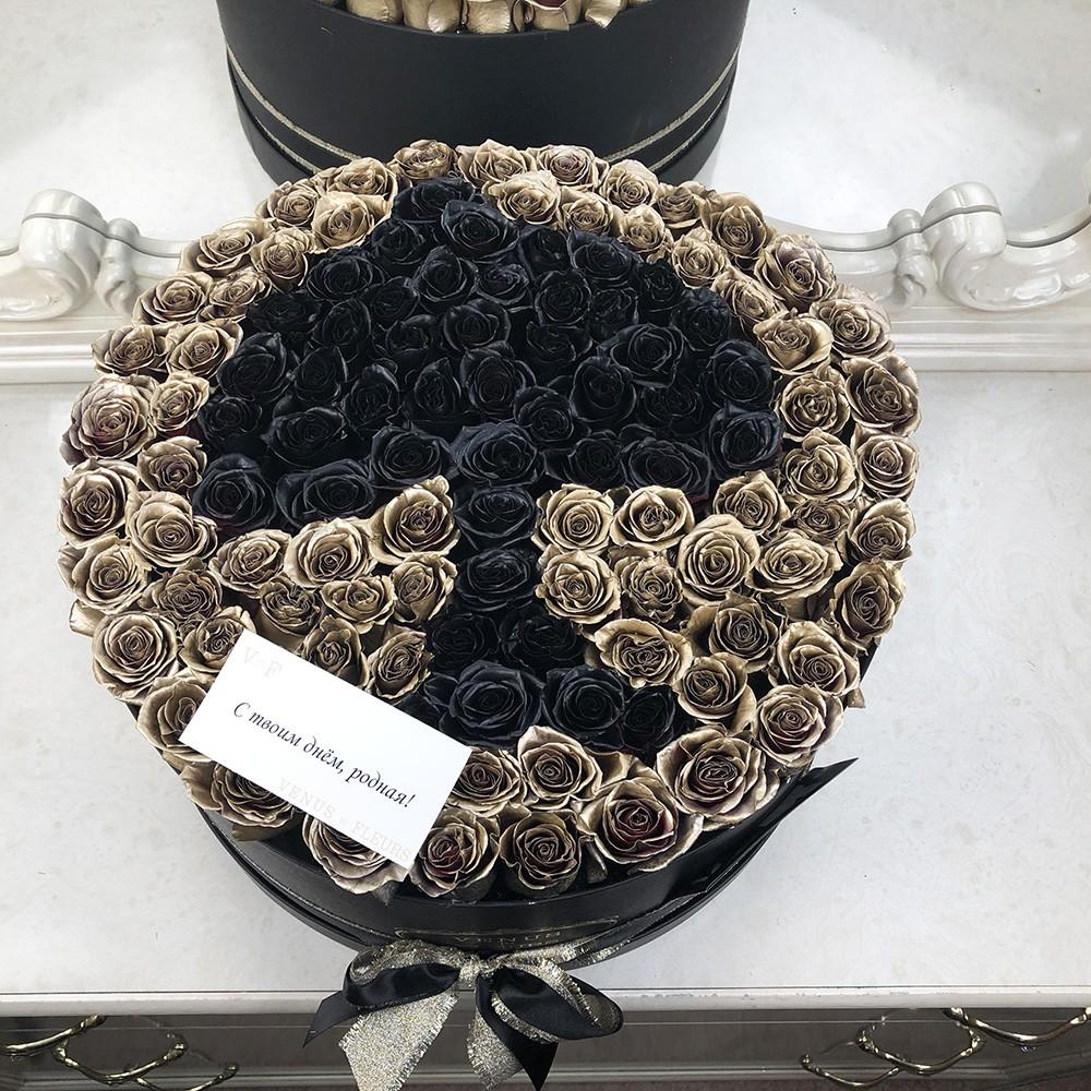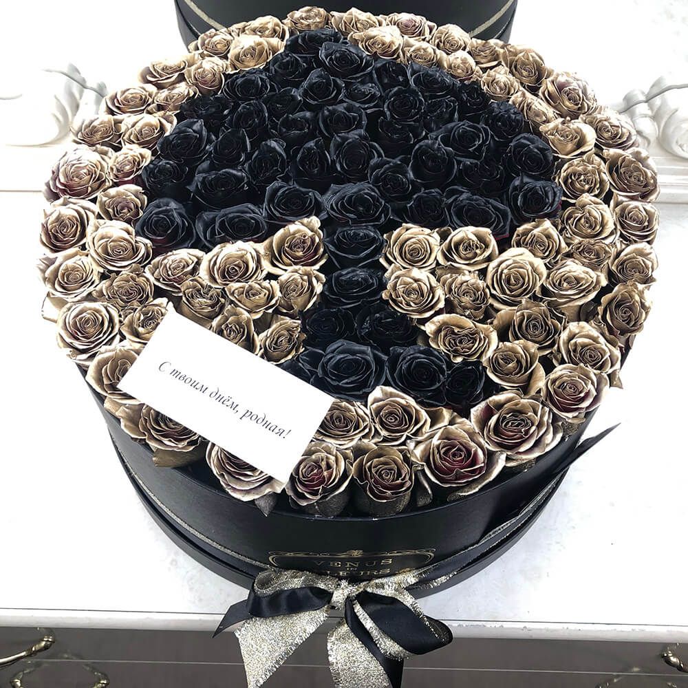 Золотые розы - это уникальное творение флористов, а в сочетании с чёрными розами композиция становится просто невероятной. Этот роскошный дорогой букет восхитит вашу любимую. Дарить букеты из золотых роз - стильно, престижно и статусно. Таким букетом вы подчеркиваете не только любовь к вашей избраннице, но и показываете, как она вам дорога